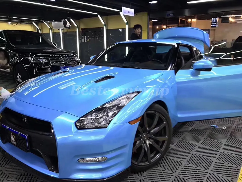 Super Gloss Metallic Lake Blue Car Wrap Colors Vinyl Vehicle Wrap China Car Wrap And Vinyl Wrap